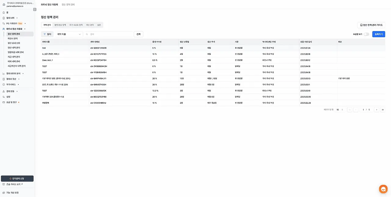정산 정책 관리 페이지의 사용성이 개선되었습니다.